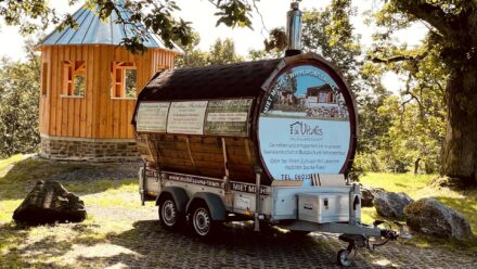 Wenn das der Fall ist, vermieten wir unser Saunafass sehr gern. Bis zu sechs Personen finden darin Platz und können in privatem Umfeld einmal ganz entspannt und ungestört saunieren. Vielleicht wäre das eine Idee für liebe Menschen, die Sie gern an die Sauna heranführen möchten, die sich aber nicht so richtig trauen? Oder für einen begeisterten Saunagänger, der plötzlich mal seinen Lieblingsort ganz für sich allein hat? Oder für eine nette Runde mit den Vereinskameraden …